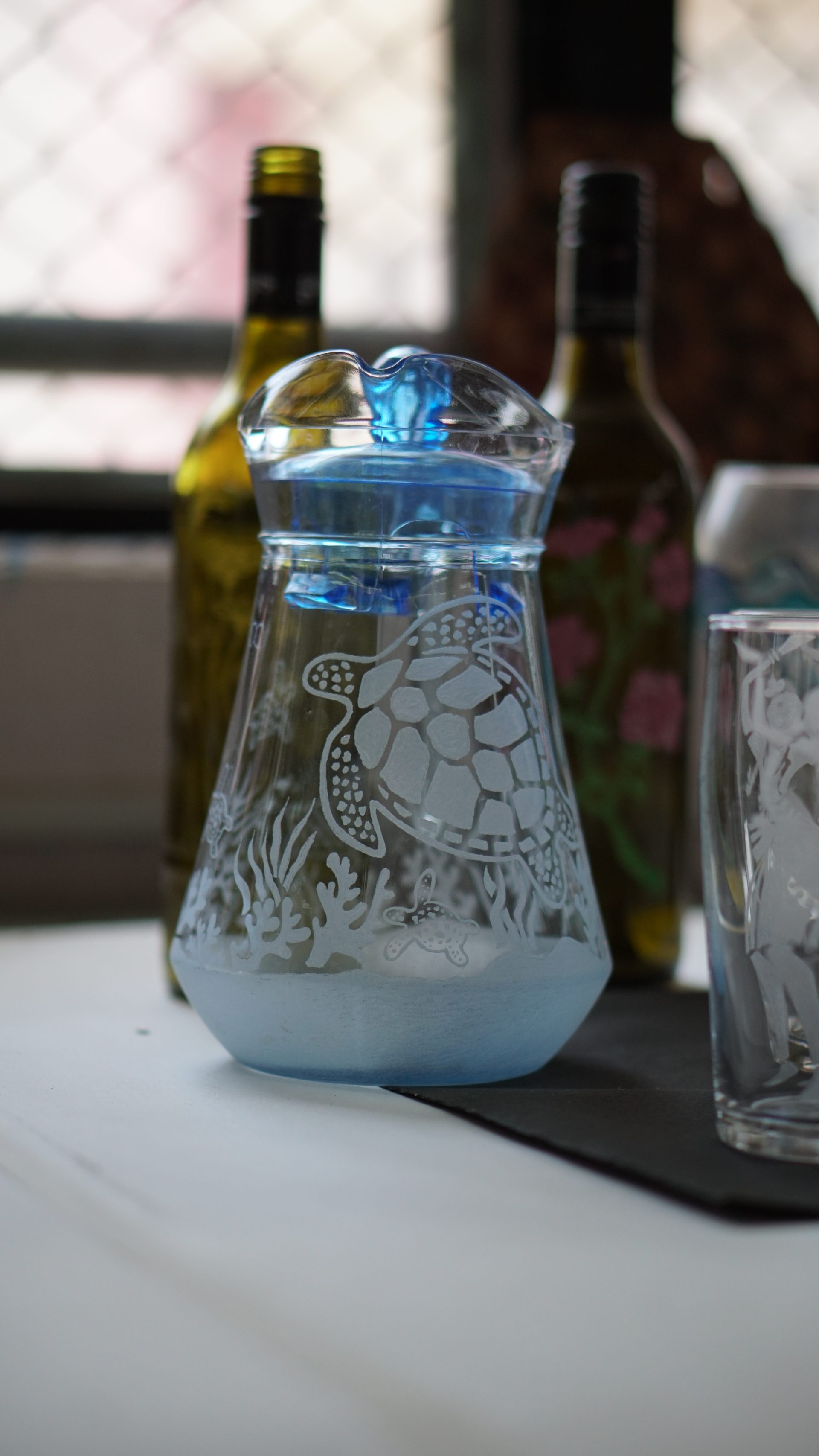 Hand-engraved sea turtle on glass — a celebration of patience and the beauty of nature